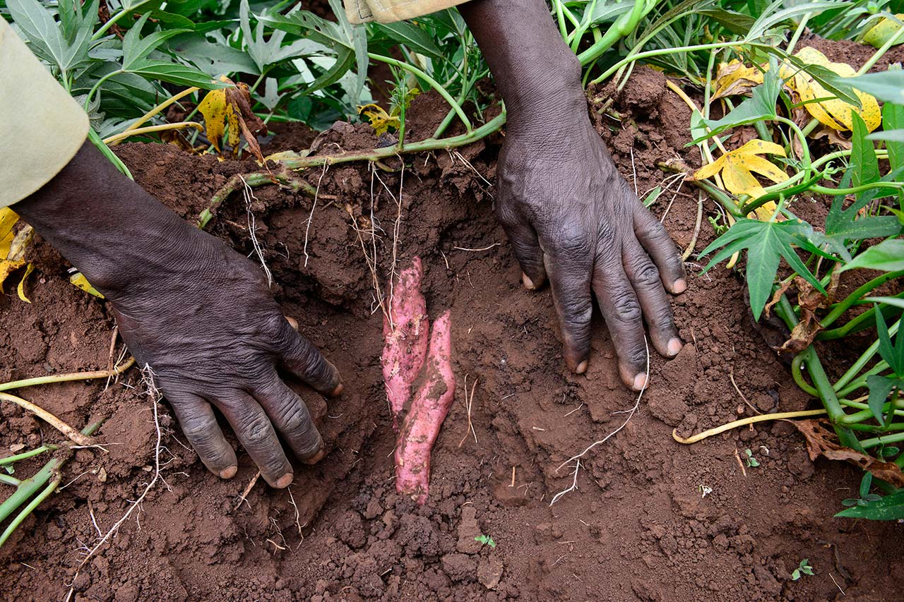 Kleinbauern in Kenia reicht ihre Ernte für kaum mehr als die eigene Ernährung. Die Umstellung auf ertragreiche Feldfrüchte wie die orangefarbene Süßkartoffel kann das Leben einer ganzen Region verändern.