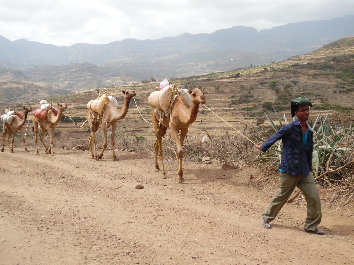 A rural youth in Ethiopia transporting goods with camels from per-urban to rural areas. Photo: Essa C. Mussa