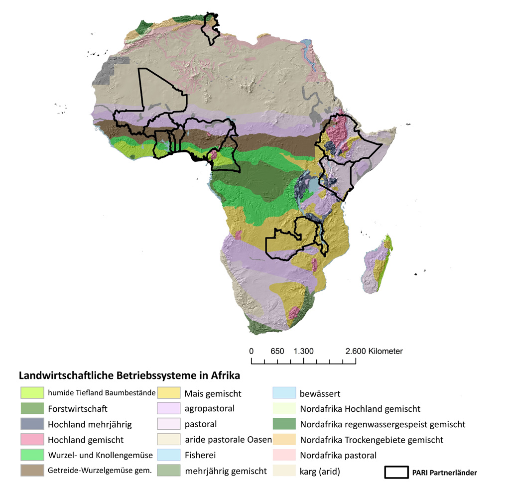 Innovations must be tailored to the specific conditions in place in the region’s agricultural sector. In sub-Saharan Africa, many diverse types of farm exist, with their own specific potential and challenges, which also vary considerably within countries (see Figure 2; for further details, see the Africa-wide PARI Study and the PARI Country Dossiers). The majority of farmers are still operating on farms with less than two hectares. Innovation for agricultural growth must therefore take account of the challenges and potential of these diverse but mainly small farms. The ‘sustainable intensification’ paradigm which supports progress towards environmental and socioeconomic goals while preserving agricultural diversity is significant in this context.