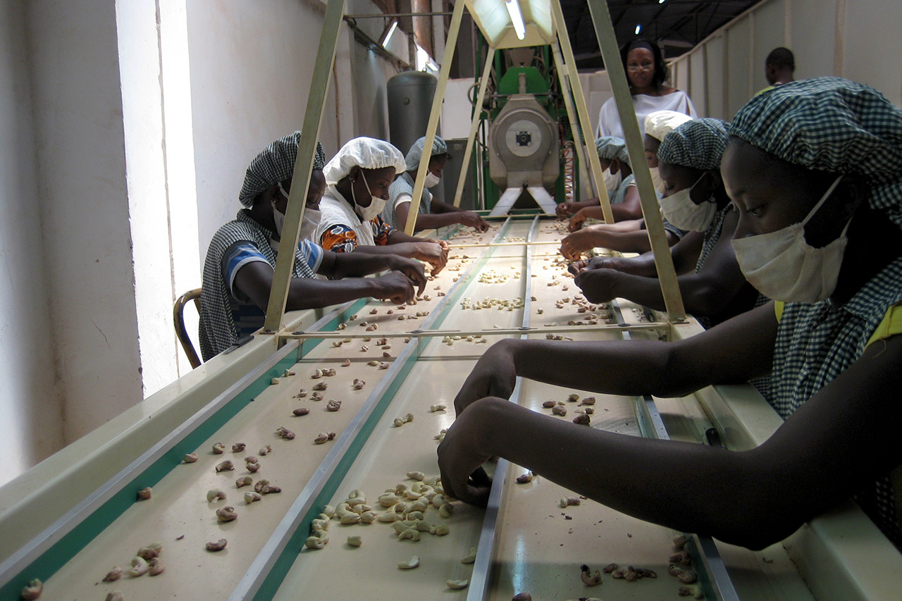 Dies liegt unter anderem an mangelnder Infrastruktur, fehlenden Investitionen und schwankenden Preisen. Die Regierungen in den Erzeugerländern versuchen, politische und wirtschaftliche Anreize zu schaffen und so die Verarbeitung vor Ort zu stärken. Denn es handelt sich hierbei um eine Tätigkeit, die vor allem Frauen beschäftigt und für viele Familien dringend benötigte Einkommen darstellt. In der Steigerung der lokalen Verarbeitung liegt ein riesiges Potenzial für die Erzeugerländer. Laut Schätzungen der Competitive Cashew Initiative ComCashew, ein regionales GIZ Projekt, welches die Cashew Wertschöpfungskette seit 2009 in Afrika fördert, könnten jährlich bis zu eine Million Arbeitsplätze geschaffen werden, würden alle afrikanischen Cashew-Nüsse, insgesamt rund 1,5 Millionen Tonnen, auch in Afrika zu Cashew-Kernen verarbeitet werden.
