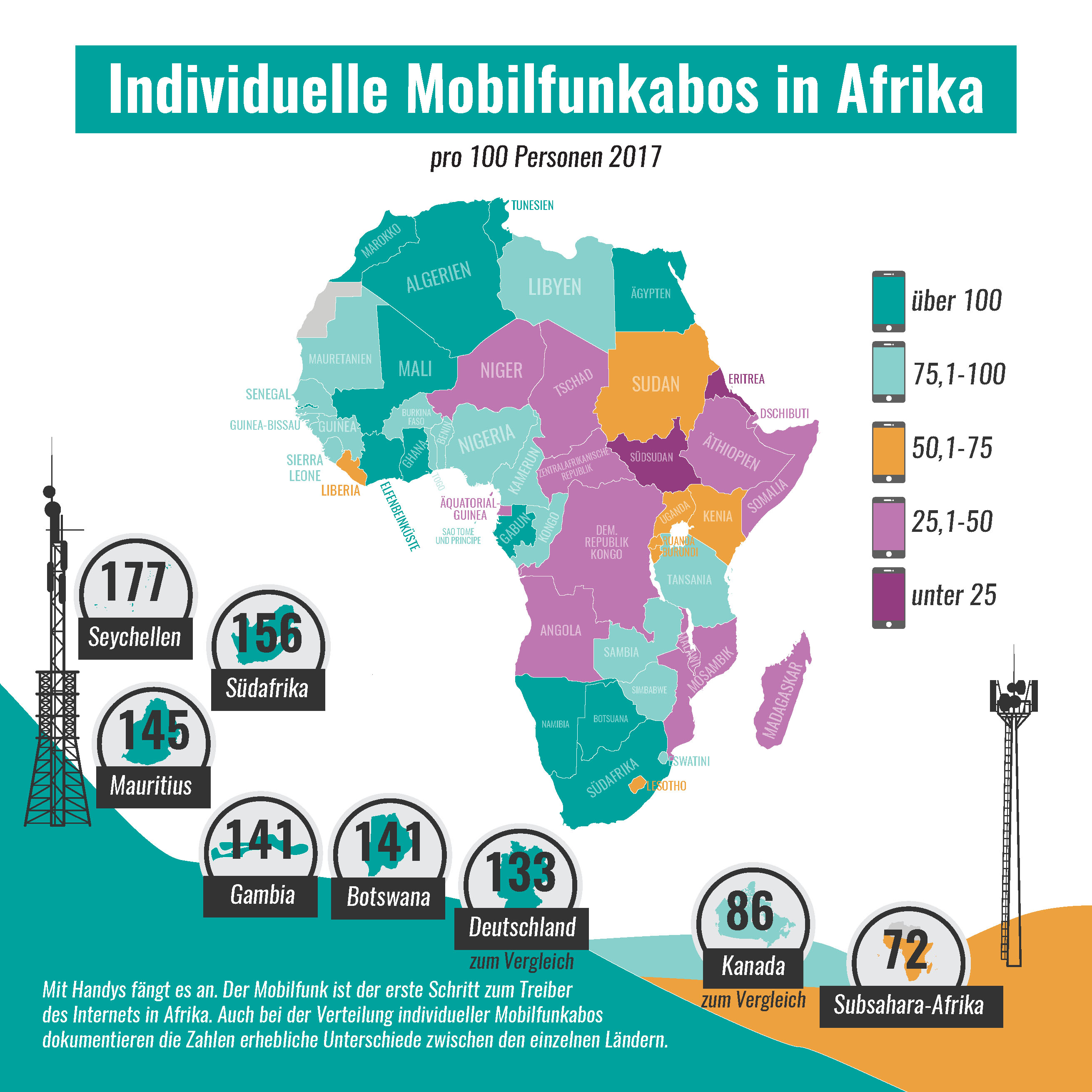 Was Afrika im Zuge der Digitalisierung erlebt, ist eine Disruption. Hier werden drei Schritte in einem genommen, dort verharrt man. Die Veränderungen sind jedenfalls enorm und bergen manche Überraschung. Ein grafischer Spaziergang.