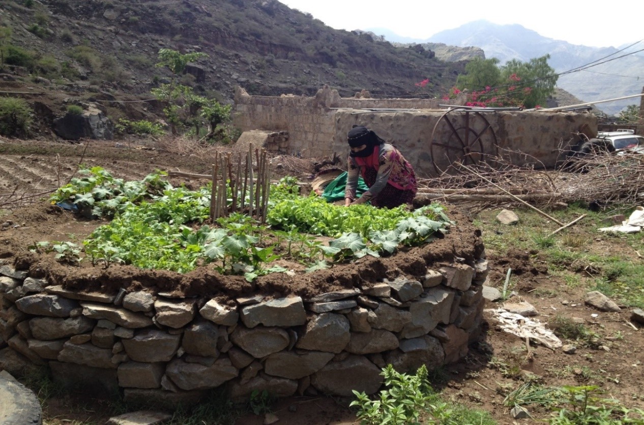Der Jemen sieht sich mit einer der schlimmsten Epidemien konfrontiert, allein in den letzten drei Jahren wurden 400.000 Verdachtsfälle gemeldet. Um in dieser Situation eine nachhaltige Verbesserung für die Bevölkerung zu schaffen, muss an verschiedenen Stellschrauben gleichzeitig gearbeitet werden. In unterschiedlichen Bereichen versucht die GIZ deshalb, der jemenitischen Bevölkerung Unterstützung zu bieten: Ein erfolgversprechender Ansatz sind sogenannte Keyhole Gardens. Dabei handelt es sich um Rundgärten, die es den Bäuerinnen und Kleinbauern ermöglichen, Bioabfälle, fäkalienfreies Abwasser und Dünger in ein Kompostierloch zu geben, das sich in der Mitte des Rundgartens befindet. Dadurch haben diese Gärten einen sehr geringen Wasserverbrauch von nur rund 10 Liter pro Woche. Die GIZ bietet den Menschen Trainings und Unterstützung beim Anlegen der Gärten. Außerdem bekommen sie Saatgut und andere notwenige Materialien, um nährstoff- und abwechslungsreiche Produkte anzubauen. Frauen bekommen gezielt die Chance, sich in Trainings und Schulungen zu lokal nachgefragten Qualifikationen weiterzubilden. Dazu zählt die Herstellung von Weihrauch, Nähen und Haareschneiden.